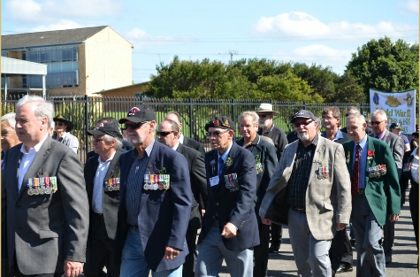 The banner party leading the Black Sheep off the AWM Parade Ground following the taking of the salute by His Excellency Sir Peter Cosgrove.